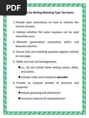 Guidelines For Writing Matching Type Test Items Pdf Multiplication Question